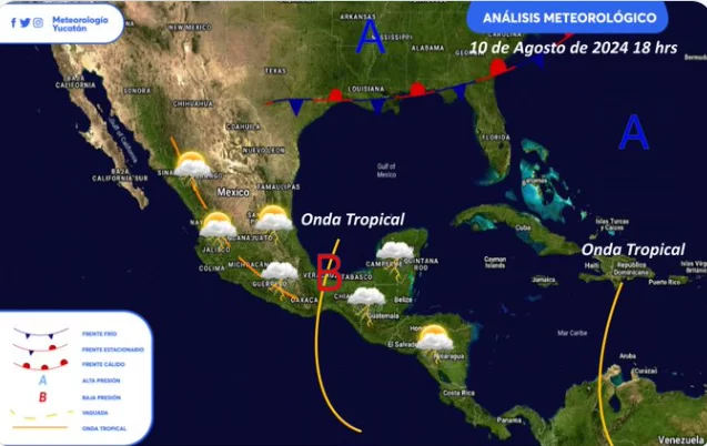 El Centro Hidrometeorológico Regional “Mérida”, del Servicio Meteorológico Nacional (SMN), dio a conocer su informe sobre el “Pronóstico Meteorológico”, valido de las 06:00 horas del sábado 10 a las 06:00 horas del domingo 11 de agosto de 2024.