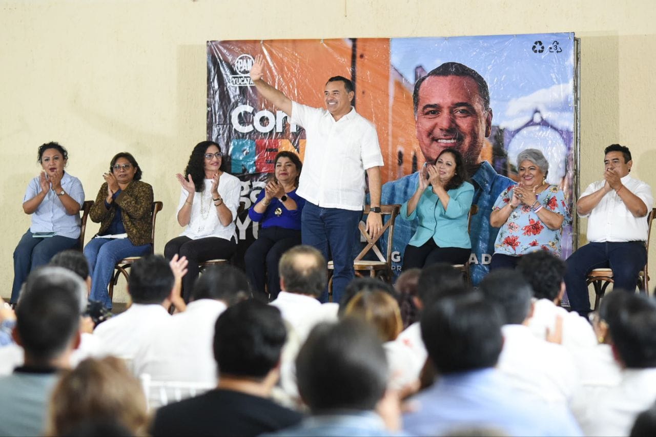 Mérida, Yucatán a 7 de diciembre de 2023.- «Nos une nuestro compromiso porque a los trabajadores les vaya mejor y puedan ganar más, fundamentalmente a las mujeres, porque puede ser incluso que ganen lo mismo, pero para ellas es más cara la vida», aseguró el coordinador del Equipo Yucatán por el Partido Acción Nacional (PAN), Renán Barrera Concha, ante el sector magisterial y los sindicatos afiliados que respondieron: «confiamos en usted y en su proyecto ¡Arriba Renán!».