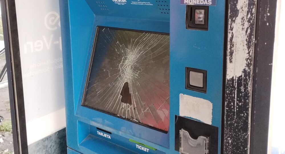 A través de redes sociales, usuarios del transporte público evidenciaron que la pantalla del cajero fue rota, impidiendo su funcionamiento.